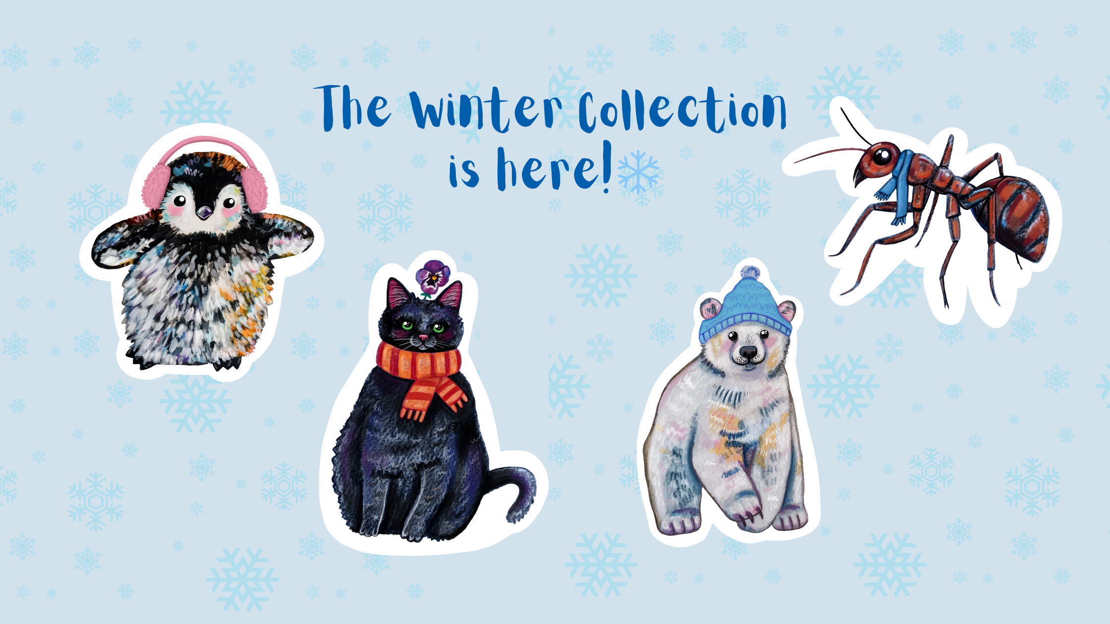 Winter Collection Sticker Pack - 4 Handmade Waterproof Vinyl Stickers