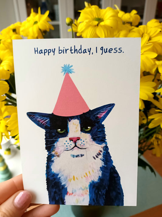 Happy Birthday, I Guess Card – Sassy Tuxedo Cat, Funny Sarcastic Greeting Card