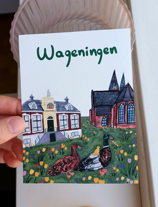 🌷 Wageningen Postcard – Municipality, Church & Cute Duck Family
