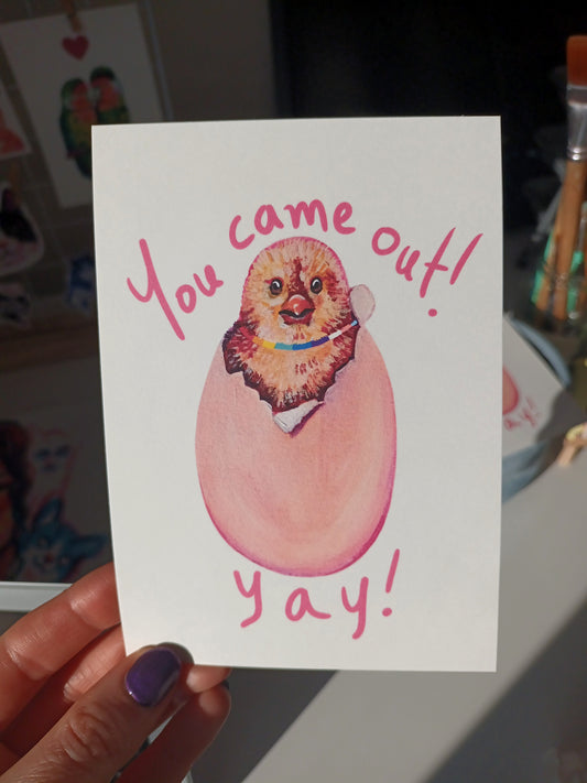 You Came Out Card – Cute Chicken Coming Out Of Shell Art Card