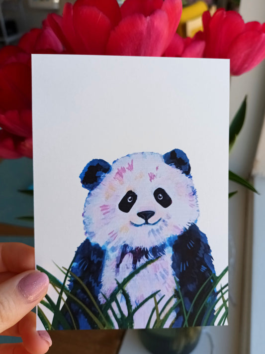 Cute Panda Postcard - Hand-painted Nature Art Card