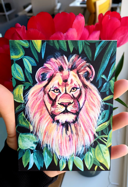 Colourful Lion Postcard – Jungle-Inspired Art Card