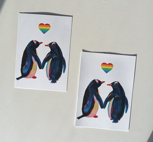 Penguins in Love Postcard – Cute LGBTQ+ Pride Penguin Couple, Romantic Art Card