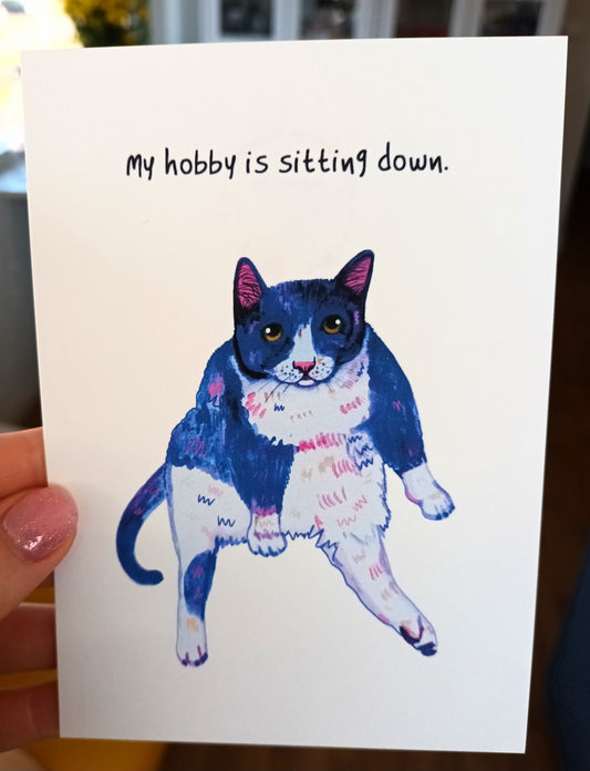 My Hobby is Sitting Down Card – Funny Sassy Tuxedo Cat Greeting Card