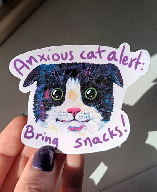 Anxious Cat Sticker – Cute Anxious Cat Vinyl Decal