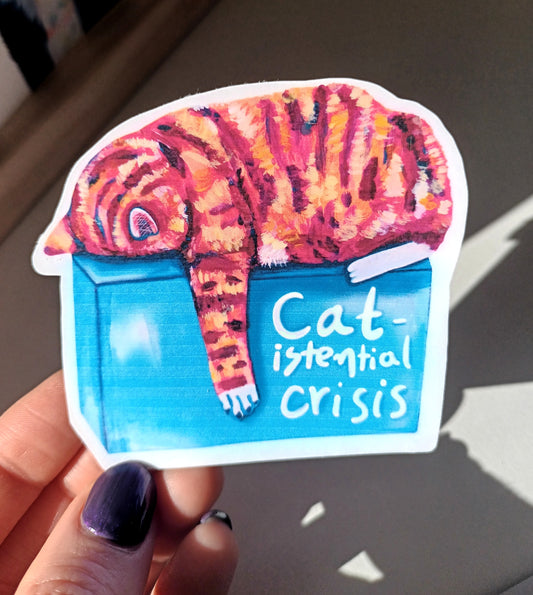 Catistential Crisis Orange Cat Sticker – Hilariously Existential Vinyl Decal