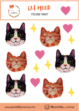 Happy Cats Sticker Sheet - Cute Waterproof Sticker Sheet