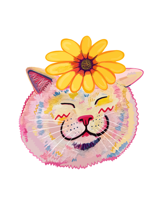 Cute Cat with Flower Sticker – Handmade Waterproof Vinyl