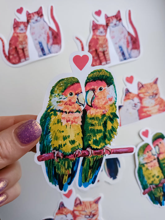 Parrots in Love Sticker – Colorful Lovebird Couple, Waterproof Vinyl Decal