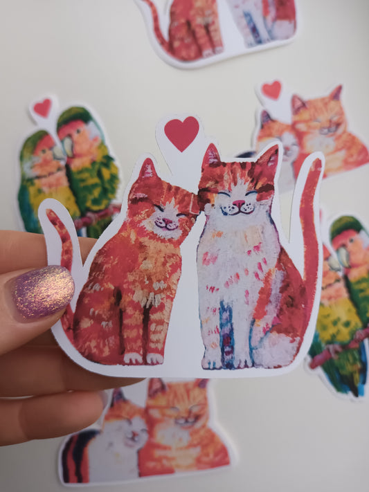 Animal Love Sticker Pack – Cats, Parrots & Penguins in Love, Waterproof Vinyl Decals