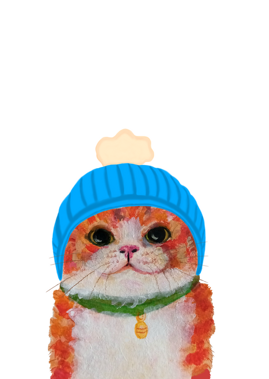 Cat with Beanie Sticker – Cute & Cozy Kitty, Waterproof Vinyl Decal
