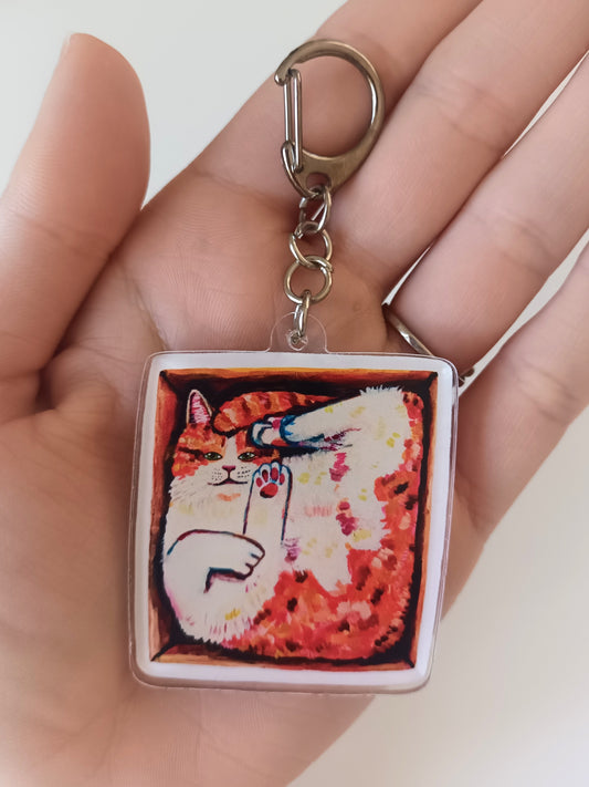 Schattige Oranje Kat in een Doos Sleutelhanger - Acryl Kattenaccessoire