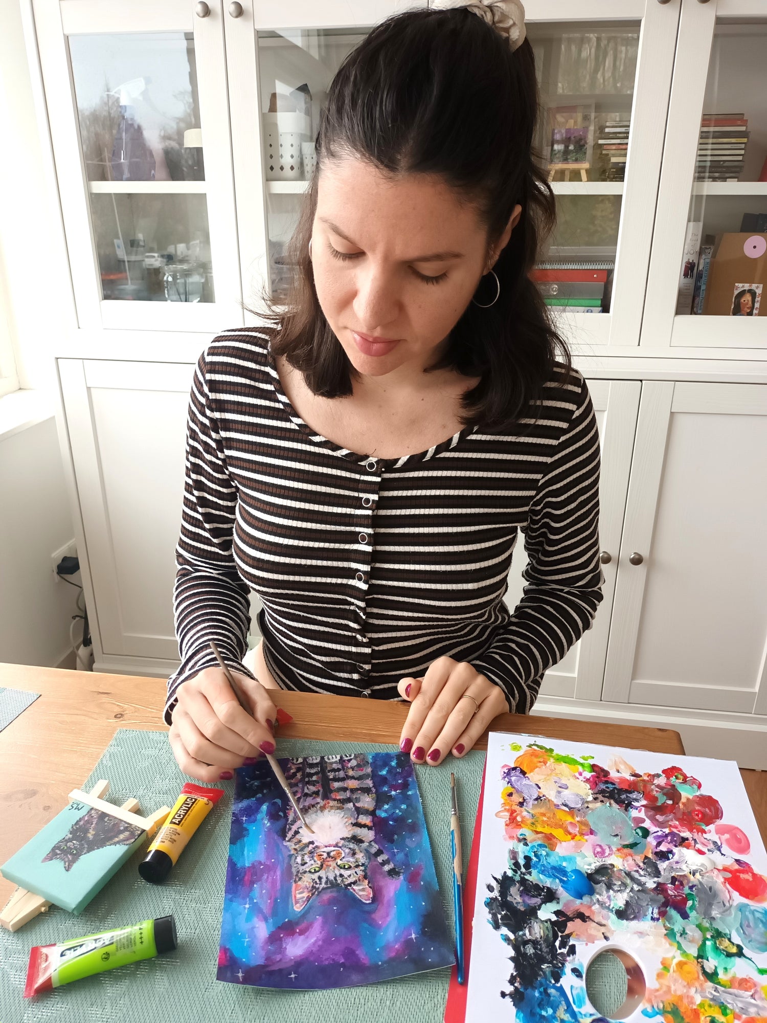 I’m Marina, an artist who’s absolutely obsessed with colour and the magic of painting. I love making joyful illustrations that are all about spreading smiles and good vibes. My animal paintings are kind of my thing—they’re bright, happy, and sometimes a little funny! One of my favourite things is capturing a pet’s unique personality and bringing it to life in my art.