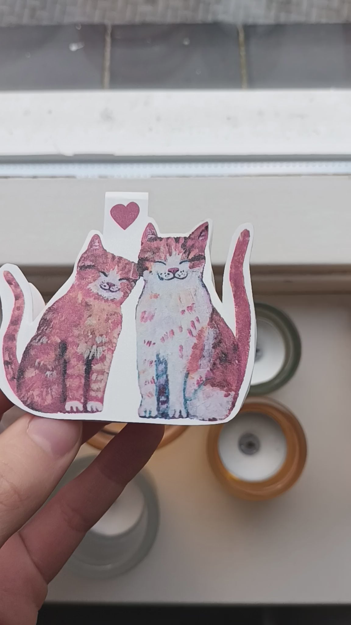 Start your next book with this adorable magnetic bookmark! Featuring a two cute cats in love, this handmade bookmark is based on original hand-painted artwork and is perfect for cat lovers, and stationery collectors.