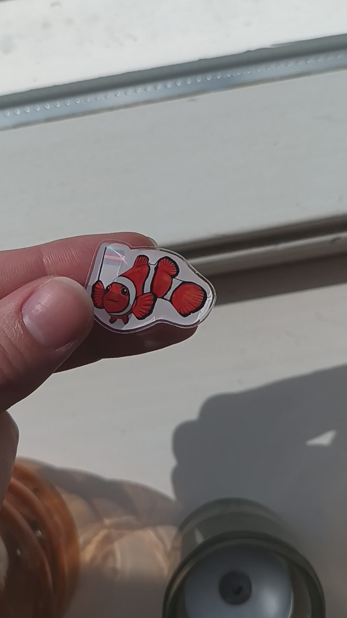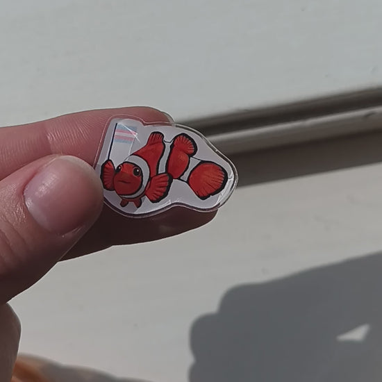 Clownfish with Trans Flag Acrylic Pin – Cute LGBTQ+ Pride Pin