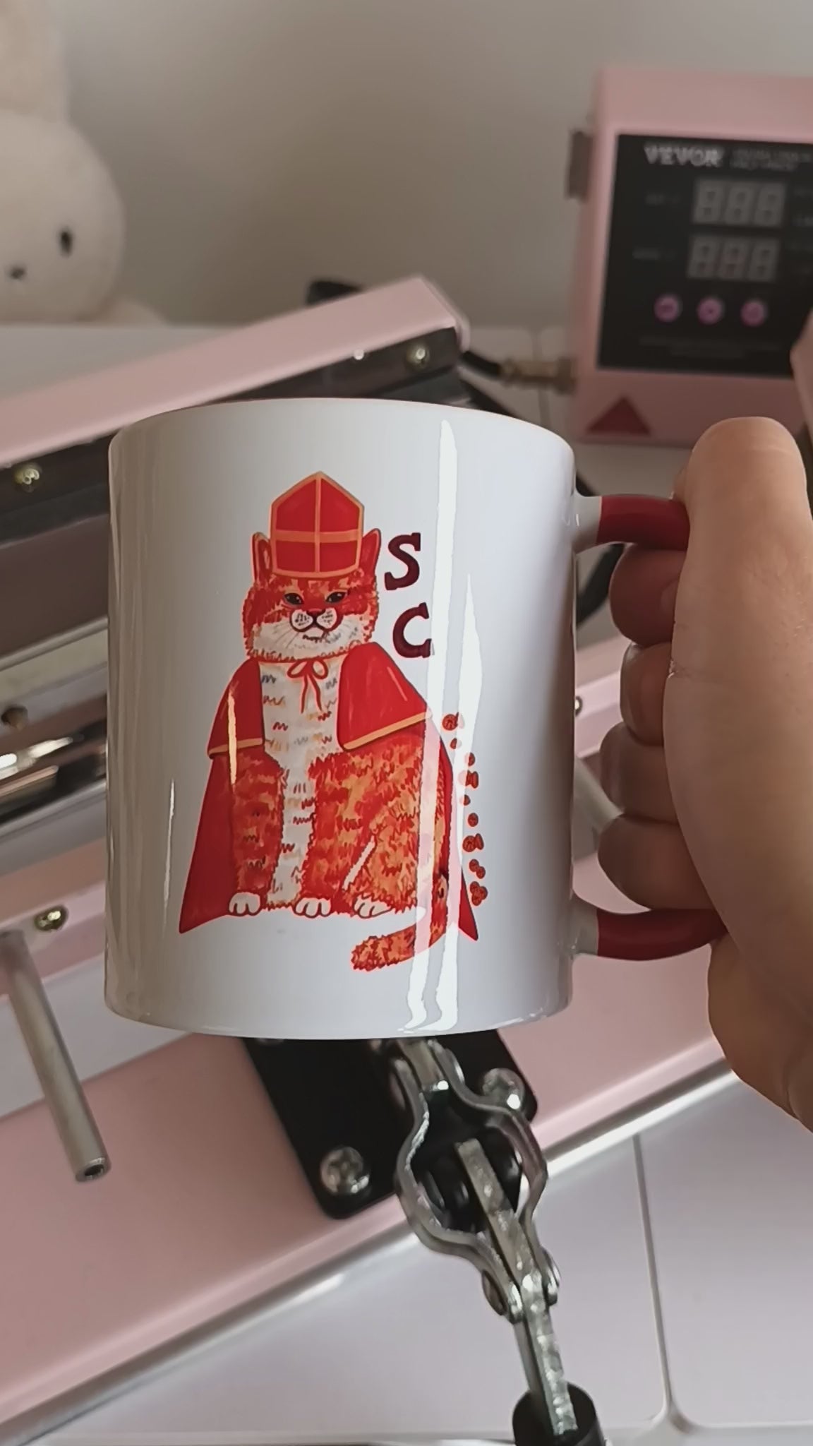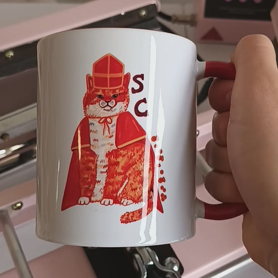 Bring cozy holiday vibes to your mornings with this adorable Sintercat mug! Featuring the artist’s original illustration of a mischievous festive cat, it’s the perfect companion for your coffee, tea, or hot chocolate. The vibrant red handle and interior add a cheerful seasonal touch that brightens up any kitchen.
